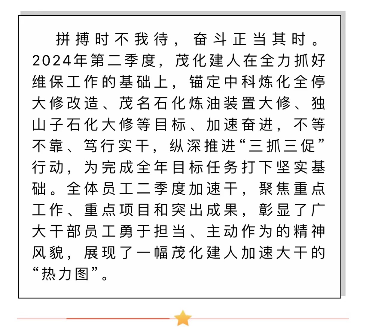 二季度 加速干丨一起來看茂化建人“熱力圖”