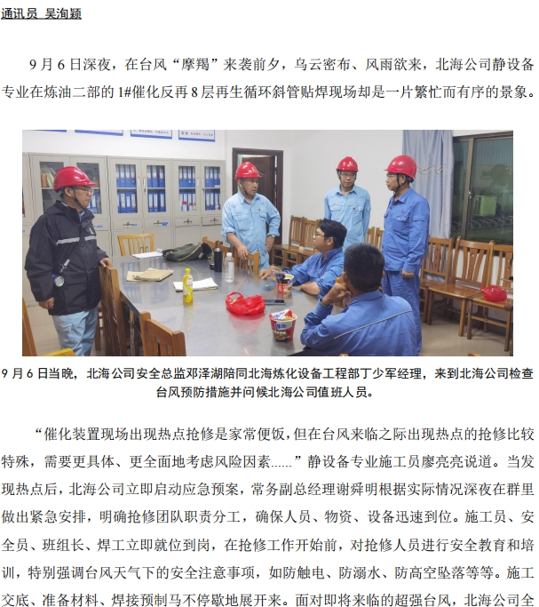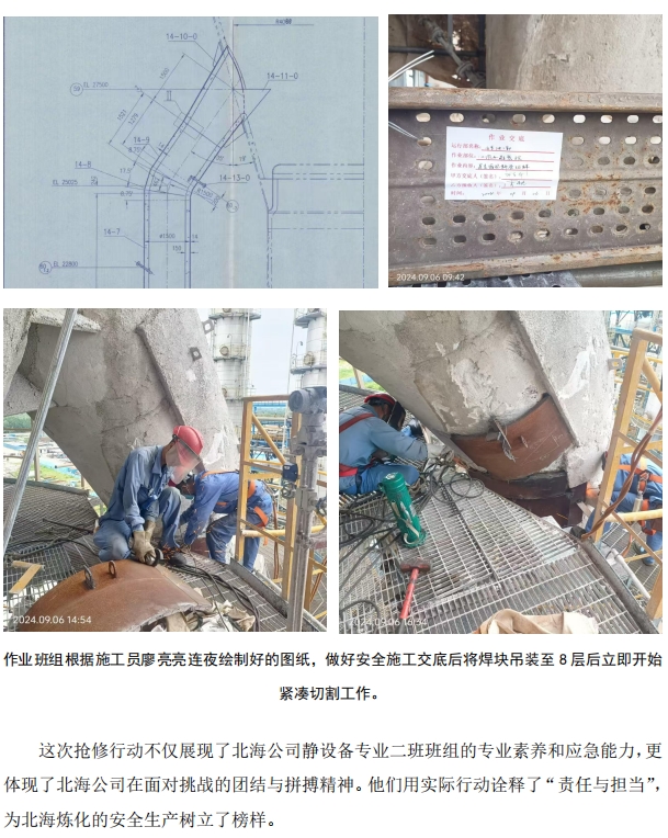 臺風(fēng)前夕!北海公司對 1#催化再生循環(huán)斜管貼焊搶險