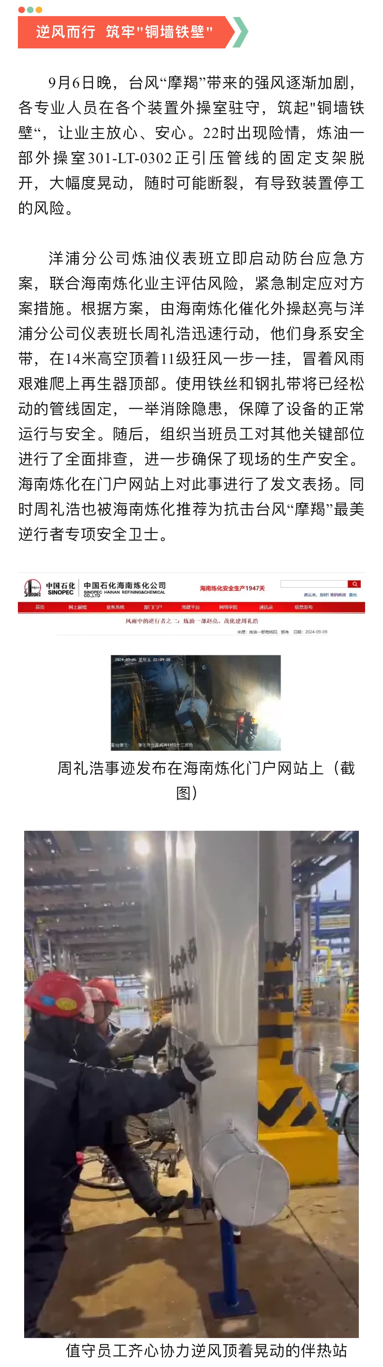 茂化建洋浦分公司抗擊超強(qiáng)臺風(fēng)"摩羯”獲業(yè)主高度表揚