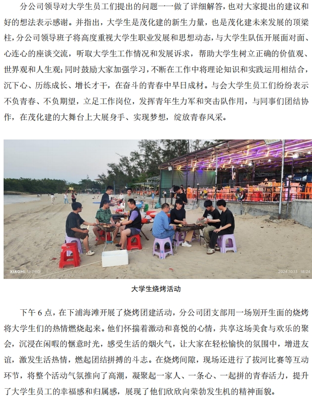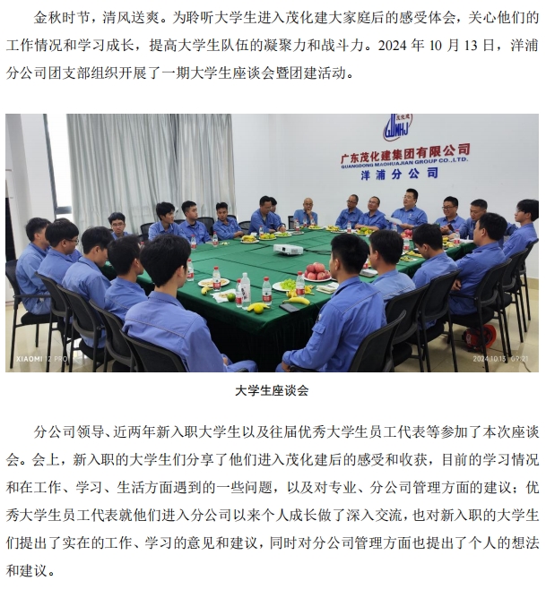 洋浦分公司團支部組織大學(xué)生座談會暨團建活動