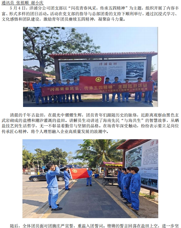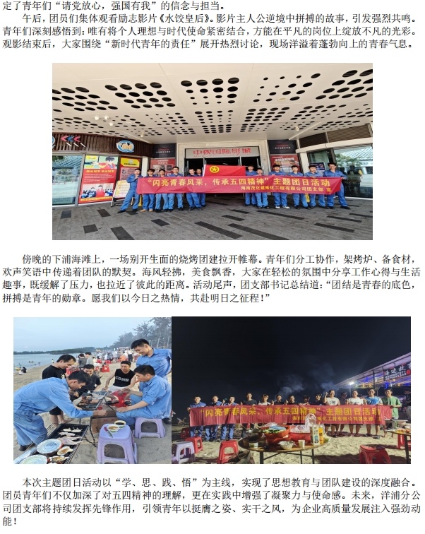 洋浦分公司團支部開展“閃亮青春風采,傳承五四精神”主題團日活動