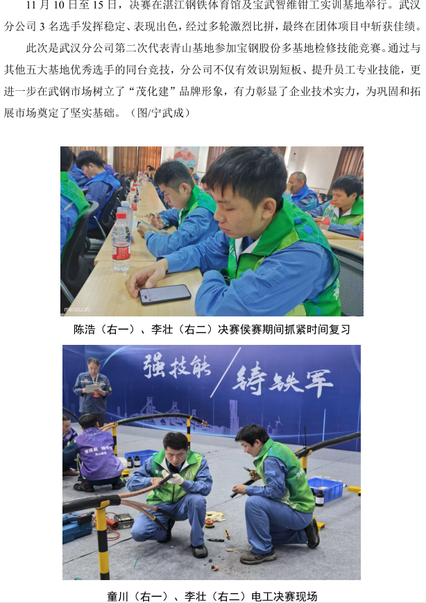 武漢分公司在寶鋼股份2025 年多基地檢修技能 競賽中榮獲佳績